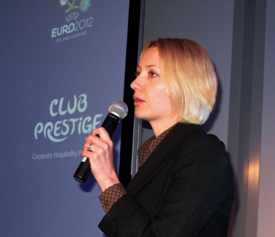 Ostatnie bilety dla biznesu Magdalena Mazany-Kransodębska przedstawiła ofertę UEFA dla grup korporacyjnych "Club Prestige", w skład których wchodzą bilety na mecze (w strefie VIP lub w lożach), catering i występy artystyczne. Ceny zaczynają się od 3000 euro za 3 mecze na jednym stadionie dla jednej osoby. Za te pieniądze UEFA obiecuje coś, czego klienci "nigdy nie zapomną".