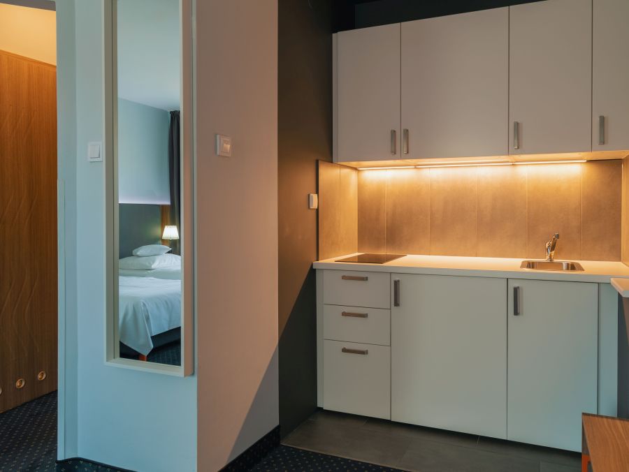 Nowa inwestycja w Best Western Hotel Poleczki została ukończona. Do 24 pokoi, z których korzystali dotąd goście stołecznego trzygwiazdkowca, dołączyło 29 komfortowych pokoi typu Superior. Są to przestrzenie o powierzchni 30 mkw., funkcjonalne i nowocześnie wyposażone. Dominują w nich odcienie brązu i szarości, a we wnętrzach wykorzystane zostały różne materiały: drewniane meble i panele ścienne zestawiono ze skórzanymi krzesłami i fotelami. Wydzielono wygodne miejsce do pracy przy biurku, a część z nowych pokoi posiada także aneks kuchenny oraz balkon.