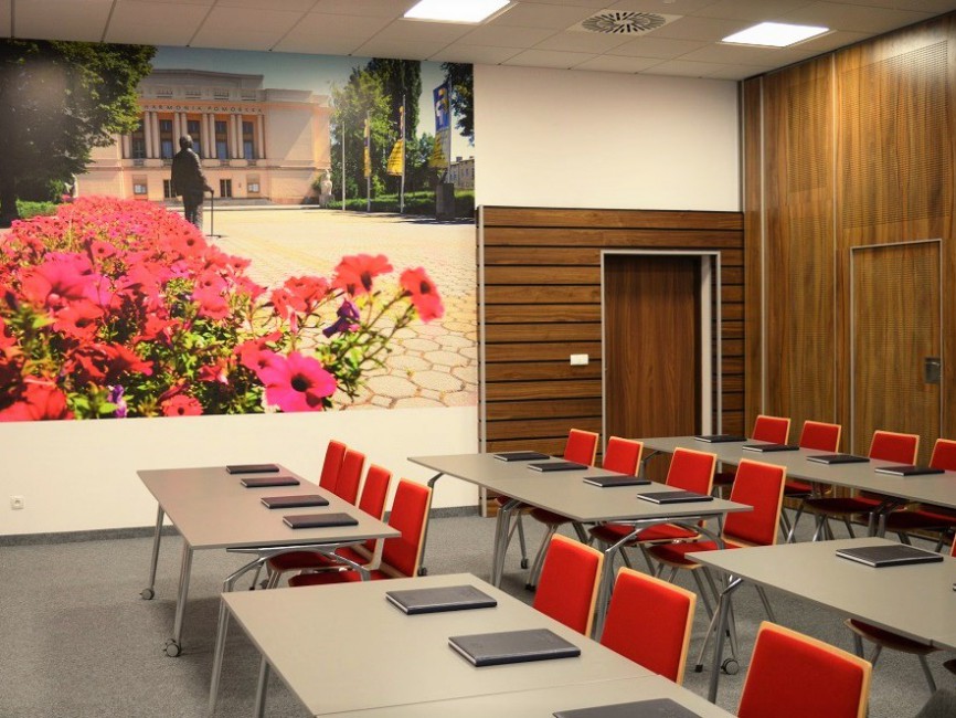 Na część konferencyjną składają się 4 sale o łatwo zapadających w pamięć nazwach, związanych z porami roku. Największa z sal, Wiosna (357 mkw.), o kolorystyce utrzymanej w zieleni, brązach i szarościach, bez problemu pomieści do 300 osób w ustawieniu teatralnym. W sali Zima (274 mkw.) znajdzie się miejsce dla 220 gości w takim samym układzie. Dominuje w niej niebieska barwa. Z kolei ciepłym odcieniem koloru pomarańczowego odznacza się Jesień (130 mkw.), która pomieści 120 uczestników spotkania biznesowego. Najmniejsze z pomieszczeń, sala Lato (90 mkw.), utrzymana w czerwieni i szarościach, będzie idealna na konferencje na 80 osób. Łącznie sale mogą pomieścić do 720 gości.