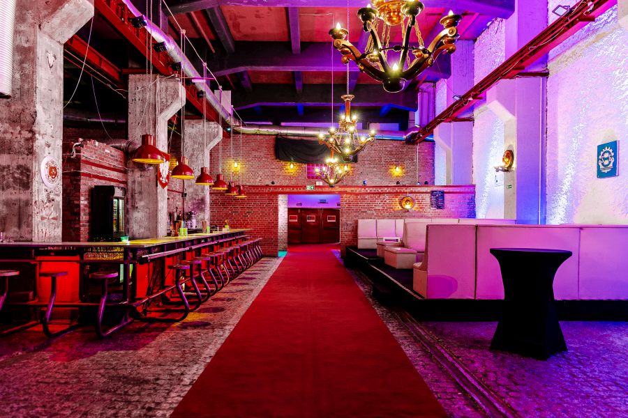 Tego wnętrza Wasi goście na pewno nie zapomną. Ściany z czerwonej cegły, kolumny z betonu, odsłonięty sufit, proste „fabryczne” lampy zestawione z ozdobnymi żyrandolami, a do tego wielka zawieszona suwnica oraz meble i bar jak z jadłodajni Stoczni Gdańskiej. Z tego nietuzinkowego połączenia wyłania się zaskakująco harmonijne wnętrze, w którym chętnie organizowane są toasty, koncerty unplugged, kameralne imprezy. Sala Klubowa (400 mkw.) – C.LUB Stocznia, bo o niej jest mowa, podczas koktajlu pomieści 400 gości. Warto dodać, że prowadzą do niej zabytkowe stoczniowe wrota.