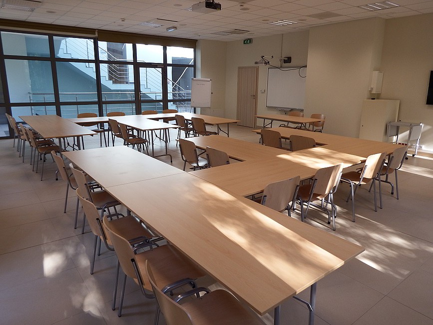 Główna sala wielofunkcyjna o powierzchni ok. 400 mkw. wyposażona jest w podesty sceniczne o powierzchni ok. 40 mkw. oraz pełne wyposażenie multimedialne: nagłośnienie, projektor, mikrofony, oświetlenie sceniczne, duży ekran oraz sprzęt do tłumaczenia symultanicznego na 30 osób. Stanowi ona miejsce na wydarzenie dla ok. 200 osób. W budynku znajdują się także dwie sale szkoleniowe - każda z nich mierzy 84 mkw. i pomieści ok. 40 osób. Jedna z nich znajduje się na parterze natomiast druga na 1 piętrze. Sale wyposażone są w projektory, tablicę interaktywną, małe i duże płaskie telewizory, system wentylacji oraz ogrzewania podłogowego, regulację natężenia oświetlenia a także sterowane elektrycznie rolety okienne. Ponadto, w budynku znajduje się kilka mniejszych pomieszczeń do prowadzenia spotkań w kameralnym gronie. Sale szkoleniowe posiadają łatwy dostęp do toalet oraz aneksu kuchennego, w którym istnieje możliwość przygotowania herbaty/kawy i cateringu.