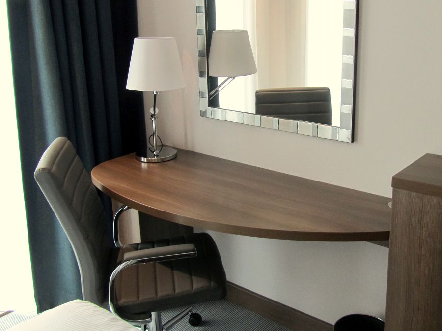 Oferta nowo otwartego Hiltona obejmuje 163 pokoje typu Twin, Queen (z dodatkową rozkładaną sofą), w tym także 2 apartamenty Corner oraz 2 apartamenty zaprojektowane specjalnie z myślą o potrzebach osób niepełnosprawnych (z niższym umeblowaniem i włącznikami oraz przestronną łazienką). Pokoje znajdują się na piętrach 1-6, a ich goście mogą skorzystać z usługi Digital Key, która pozwala na otwarcie pokoju za pomocą telefonu lub smartwacha. Największy, narożny apartament typu Corner, o powierzchni 44 mkw., to studio, na które składają się: pokój dzienny z rozkładanym narożnikiem, sypialnia oraz łazienka. Wszystkie pokoje są klimatyzowane, wyposażone w łóżka typu Hampton®, TV LCD (42"), zestawy do parzenia kawy i herbaty, żelazko i deskę do prasowania oraz dostęp do wifi. Na osoby podróżujące w celach biznesowych czeka ergonomiczny kącik do pracy. Elegancki wystrój: miękkie wykładziny, tekstylia, punktowe oświetlenie, wygodne fotele i stonowana kolorystyka (szarości, brązy, biel z zielonomodrymi akcentami) sprzyjają odpoczynkowi. Choć hotel znajduje się przy ulicy, pokoje są bardzo dobrze wyciszone. Goście Hiltona w cenę za pokój mają wliczone ciepłe śniadanie serwowane w restauracji. Jak prezentuje się to wnętrze...?