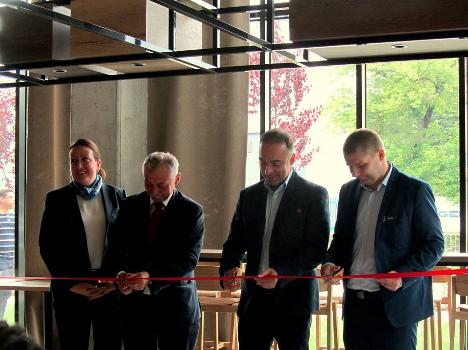 Wstęgę uroczyście przecięli: zastępca burmistrza dzielnicy Mokotów Krzysztof Skolimowski, właściciel Rafał Kwiatkowski i dyrektor hotelu Łukasz Pakuła