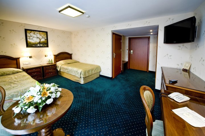 Pokoje: Klimatyzowane pokoje w dobrym standardzieO tym, że hotel nastawiony jest na gości biznesowych świadczy fakt, ze spośród 136 pokoi aż 116 to identyczne twiny, czyli pokoje dwuosobowe z oddzielnymi łóżkami.