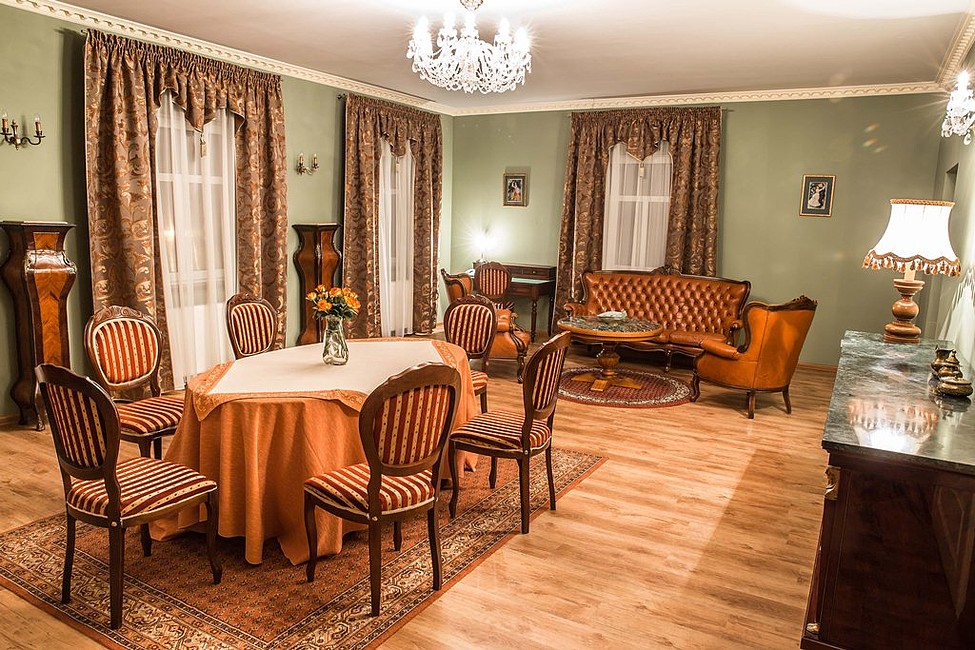 Zaplecze noclegowe to 17 komfortowych pokoi jedno-, dwu-, i trzyosobowych z łazienkami i wi-fi oraz apartament o pow. 80 mkw., w skład którego wchodzi salon, sypialnia, dwie łazienki oraz osobny przedpokój. W zależności od zapotrzebowania, hotel dysponuje dodatkowymi łóżkami typu twin i queen, dlatego może przyjąć jednorazowo do 50 osób.