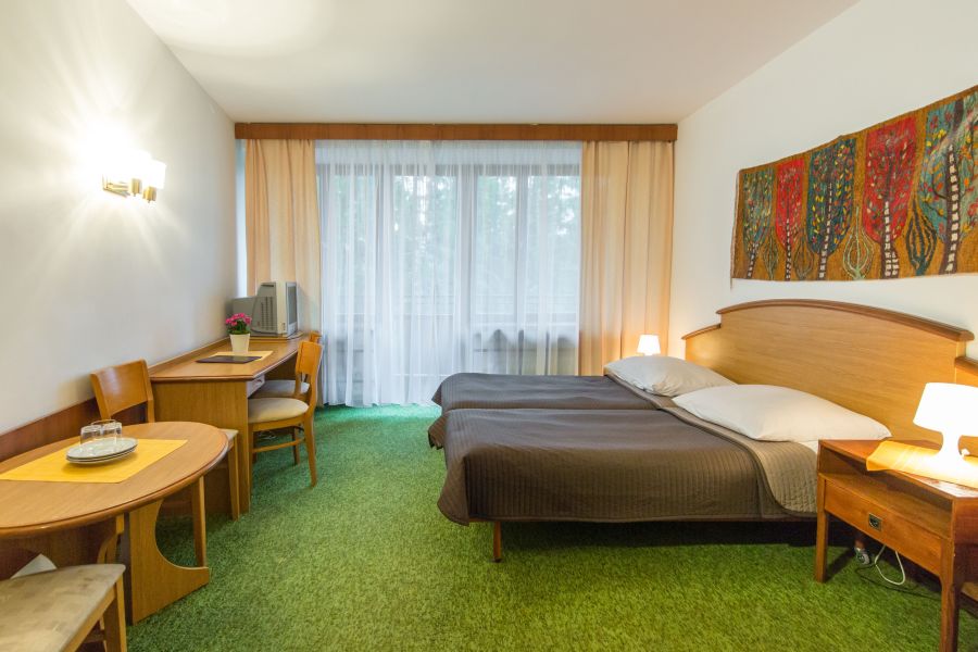 Z dala od miejskiego zgiełku i turystów, wśród świerkowych lasów, wypoczywa się najlepiej. Na gości Hotelu Tatry czeka 36 pokoi dwuosobowych typu Twin, 4 pokoje trzyosobowe oraz 10 apartamentów dwuosobowych. Ponadto w sąsiednim budynku turystycznym znajduje się 8 pokoi trzy-, cztero- i sześcioosobowych. Łącznie daje to możliwość zakwaterowania około 135 uczestników konferencji lub eventu. Przykładowy pokój trzyosobowy to przestrzeń o powierzchni 25 mkw. z trzema oddzielnymi łóżkami i możliwością zsunięcia dwóch. Utrzymany jest w kolorach ziemi: brązach i zieleni, na podłodze leży wykładzina, w oknach wiszą firanki i zasłony. Do wyposażenia należą: stolik kawowy, TV, telefon, balkon z widokiem na góry, wi-fi. Po wypoczynku warto odwiedzić hotelową restaurację.