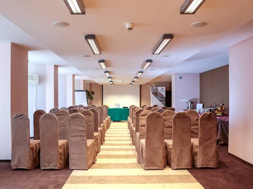 Czy plany firmy obejmują kameralne spotkania z klientami biznesowymi, czy też duże zjazdy pracowników, szkolenia bądź konferencje – w Hotelu Uzdrowiskowym Wilga znajdzie się odpowiednia przestrzeń dla ich organizacji. Sala Zdrojowa o powierzchni 100 mkw. pomieści do 60 osób w ustawieniu zarówno teatralnym, jak bankietowym. W Sali Ogrodowej (100 mkw.) wygodnie zasiądzie 120 gości w ustawieniu teatralnym, 40 – w szkolnym. Sala Klubowa (60 mkw.) to przestrzeń dla 50 osób w ustawieniu teatralnym, zaś 20 – w szkolnym. Nieduża Sala Parkowa (25 mkw.) pomieści 15 gości, z kolei Sala-Biblioteka (25 mkw.), która pełni funkcję Business Roomu, pozwala wygodnie zasiąść 12 osobom. Mogą one w niej również skorzystać z dostępnego sprzętu: drukarki, kserokopiarki, komputera, telewizora z opcją wyświetlania prezentacji, sprzętu audio i dvd. Sale są klimatyzowane, wyposażone zgodnie z oczekiwaniami klientów – w projektor multimedialny, system nagłośnienia z mikrofonami, rzutnik folii, flipchart, ekran, z dostępnym bezprzewodowym Internetem. W sąsiednim budynku znajduje się także duża Sala Kinowa (314 mkw.), idealna na duże spotkania w grupie liczącej do 220 osób. Wszystkie pomieszczenia utrzymane są w kolorystyce przyjemnej dla oka, dominują barwy ziemi, sprzyjające skupieniu. W pobliżu sal konferencyjnych mieści się antresola, którą można wykorzystać jako przestrzeń wystawową lub bufetową – na czas przerwy w konferencji. Hotel Wilga oferuje też gościom biznesowym wyborny catering konferencyjny.