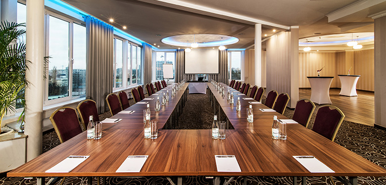 Zacznijmy od jednej z najciekawszych przestrzeni w Hotelu Lord – mieszczącej się na najwyższym, 6. piętrze Sali Widokowej. 180 mkw. powierzchni pozwala na zorganizowanie spotkania dla 55 uczestników w układzie teatralnym bądź 26 przy ustawieniu w podkowę. Dużym atutem jest widok na panoramę miasta oraz lotnisko z okien umieszczonych z trzech stron sali. Podwieszony sufit, oświetlenie punktowe, wszechobecne beże i biel oraz wzorzysta wykładzina stanowią kontynuację rozwiązań designerskich zastosowanych w odnowionych przestrzeniach. Tak jak pozostałe sale konferencyjne, również i Widokowa wyposażona została w klimatyzację, wbudowane nagłośnienie, opuszczany ekran, flipcharty i telefon. Okna można zaciemnić za pomocą grubych zasłon. W sali można wydzielić miejsce na przerwę kawową.