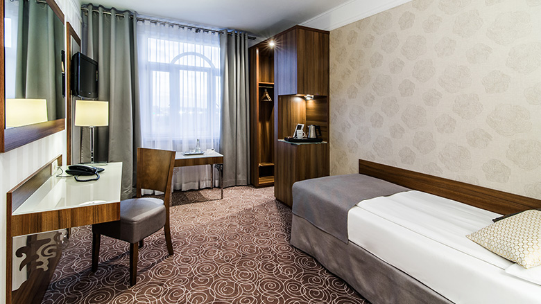 Po przeprowadzonej rewitalizacji swoim designem zachwyca 90 eleganckich pokoi, w tym 3 luksusowe apartamenty. Projekt wnętrz to odważne połączenie pozornie kontrastujących wzorów, dobrej jakości materiałów i klasycznych form z oryginalnym akcentem. Przytulności dodają tekstylia, nastrojowe światło, wygodne fotele. W pokojach wydzielono miejsce do pracy. Każde pomieszczenie wyposażone zostało w indywidualnie sterowaną klimatyzację, TV LCD, telefon, WiFi, nowoczesne łazienki z prysznicem, a w apartamentach – minibar oraz sejf.