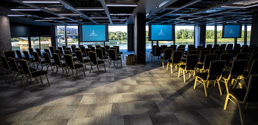 Ms Mermaid oferuje 7 sal o nazwach pochodzących od dopływów Wisły. Licząc razem z foyer, daje nam to łącznie około 700 mkw. przestrzeni na eventy i konferencje w centrum Warszawy. Kierując się w lewo od foyer, przechodzimy do strefy konferencyjnej, którą tworzą sale: Bystra (100 mkw.), Nida (130 mkw.), Biała (55 mkw.) i Wisełka (35 mkw.). Największa z nich pomieści 130 osób w układzie teatralny,m a najmniejsza 32 uczestników szkoleń w tym samym ustawieniu. Przestrzeń tę można sprawnie przearanżować dzięki systemowi przesuwnych dźwiękoszczelnych ścian, tworząc salę Botanico (330 mkw.) z malowniczym panoramicznym widokiem na Wisłę i stadion PGE Narodowy.
