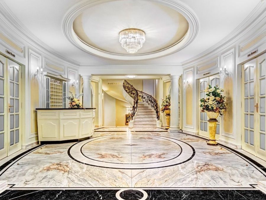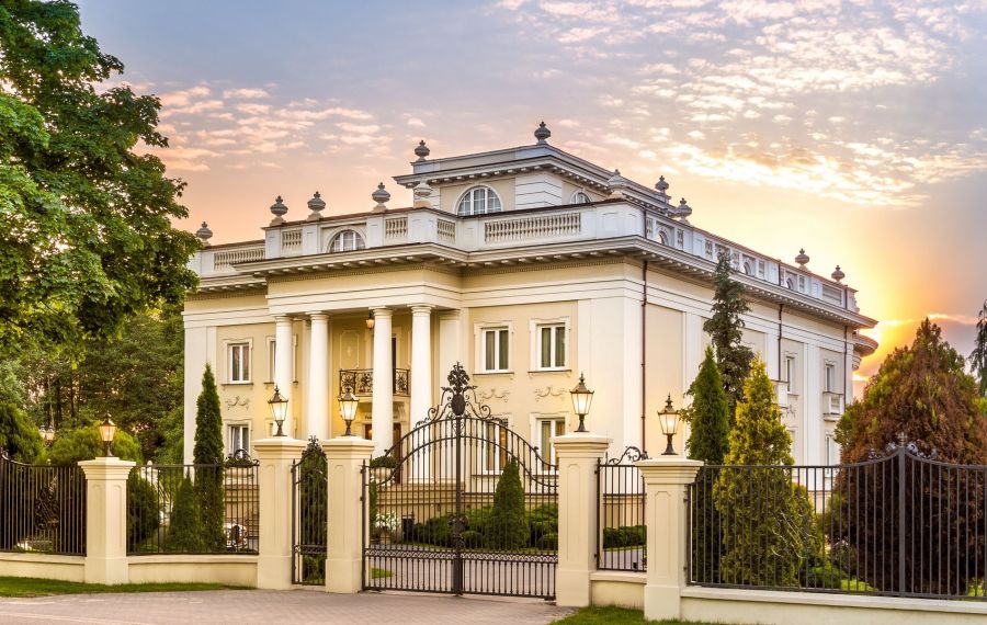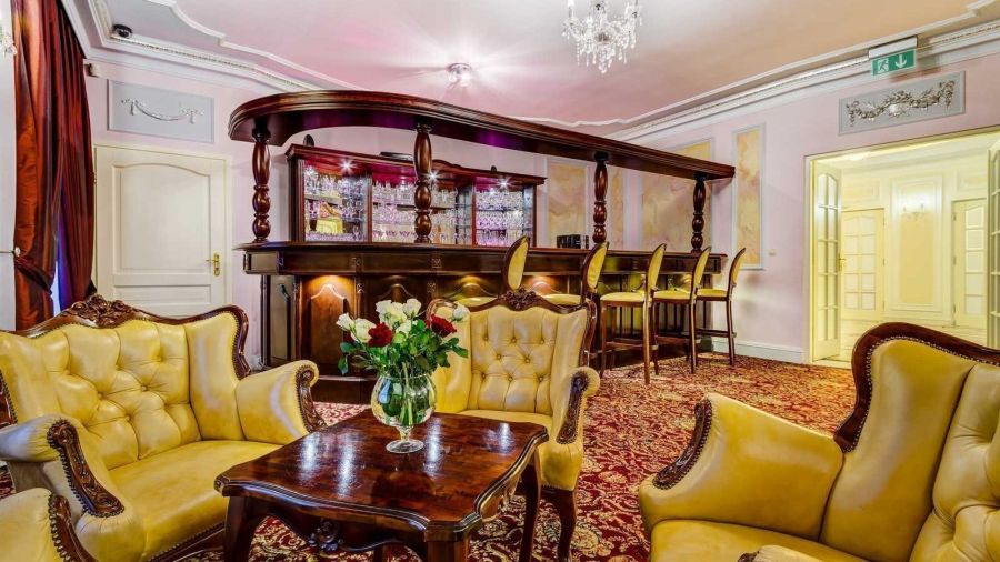 Trudno nie zauważyć stylowy budynek o białej fasadzie, z portykiem i kolumnami. Pałacyk zdobi belweder z tarasem. Obiekt otacza zadbany ogród wraz z altaną. Wnętrza utrzymane są w jasnej kolorystyce i harmonizują z architekturą budynku. Marmurowe wykończenie, kryształowe żyrandole, kolumny, wreszcie kręte schody z kutymi balustradami i poręczami, to wszystko tworzy wyjątkowy pałacowy klimat. Przy wejściu, z lewej strony, wydzielone zostało miejsce na szatnię, zaś na wprost znajduje się recepcja. Na parterze usytuowane są także sale konferencyjne oraz restauracja.