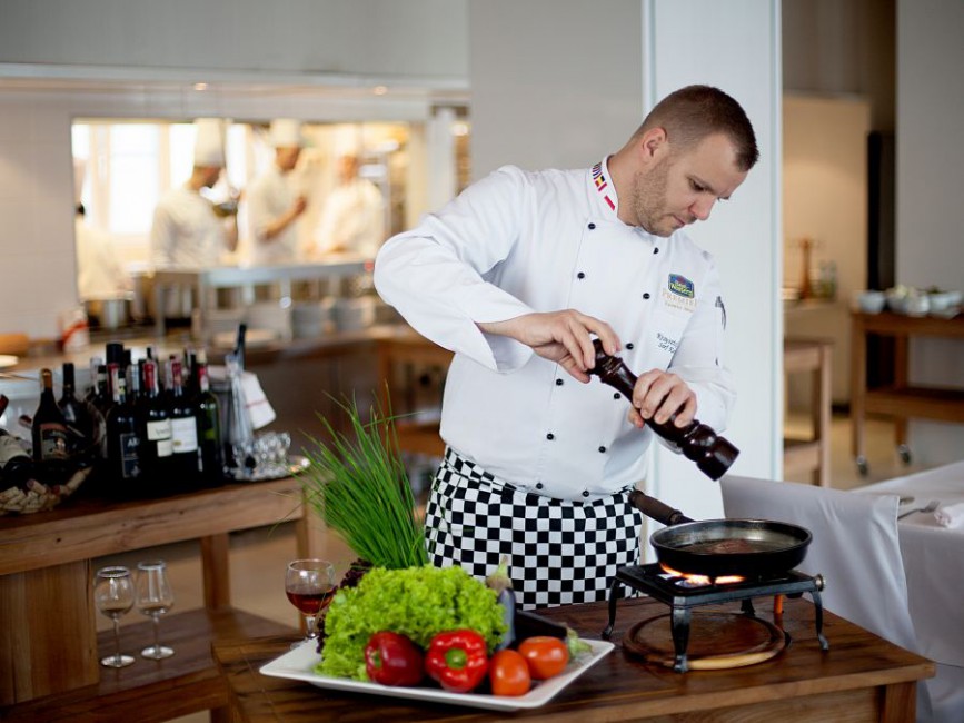 Na smakach rodzimej kuchni oparta jest karta dań hotelowej restauracji "Kuchnia Otwarta". Przyrządza się tu dania z myślą o tradycji kulinarnej regionu, gotowaniu z duszą, ze sprawdzonych upraw ekologicznych. Jest to kuchnia otwarta, więc goście mogą obserwować pracę kucharzy, a kucharze mogą widzieć, dla kogo przyrządzają dania. Pracujący tu kelnerzy, stosujący zasady serwisu francuskiego, podadzą takie specjały jak: ajntopf warzywny z kaczym udkiem czy pieczeń z młodych byków. A wieczorem swoich współpracowników możesz zaprosić do baru/klubu nocnego do wydzielonej kameralnej loży na koktajle lub drinki.