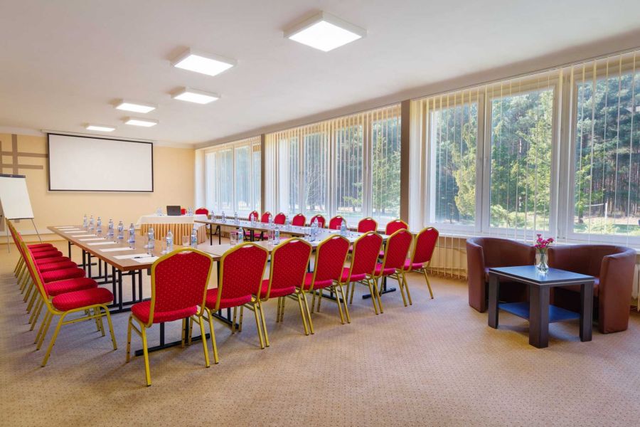 Ośrodek Perła Leśna dysponuje kilkoma przestrzeniami, które można wykorzystać w celach szkoleniowych. Główna sala konferencyjna (B), o powierzchni 80 mkw., pozwoli na zorganizowanie konferencji na 60 osób w układzie teatralnym. Dzięki dużym oknom sala jest dobrze doświetlona, a zamontowane w nich żaluzje pozwalają zaciemnić pomieszczenie podczas prezentacji. Na suficie zainstalowano plafoniery, na podłodze leży wykładzina w neutralnej kolorystyce. Sala jest klimatyzowana, wyposażona w elektrycznie opuszczany ekran, rzutnik, mobilne nagłośnienie, flipcharty, udostępniono także WiFi.