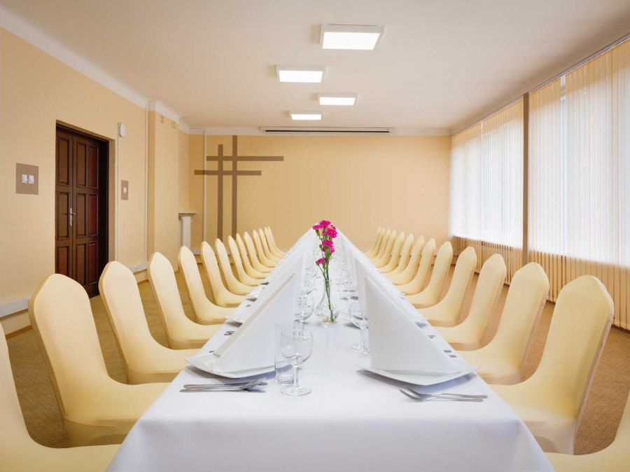 Funkcję konferencyjną pełni również znajdująca się naprzeciwko sala restauracyjna (A). To duża, jasna, odnowiona przestrzeń, która pomieści 80 gości w ustawieniu typu „podkowa”, natomiast 100 osób w ustawieniu teatralnym. Na miejscu dostępne jest standardowe wyposażenie audiowizualne. Z sali można bezpośrednio przejść na taras.