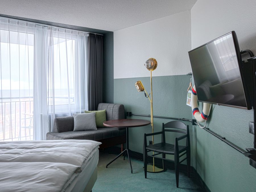 Już po przekroczeniu progu goście mogą zacząć tropić "nadmorskie" akcenty w wystroju. Drewniana recepcja, kotwice i liny żeglarskie w funkcji dekoracji, ściany i dodatki w kolorze morskiego błękitu. Wiszące krzesła, mobilne regały, mosiężne wykończenia dopełniają harmonijnego wyglądu części wspólnych. Wystrój 192 pokoi jest konsekwentną kontynuacją motywu przewodniego. Stąd obecność drewnianych zagłówków, kół ratunkowych zawieszonych na ścianach o barwie morza, a goście przeglądać się mogą w okrągłych lustrach przypominających bulaje.