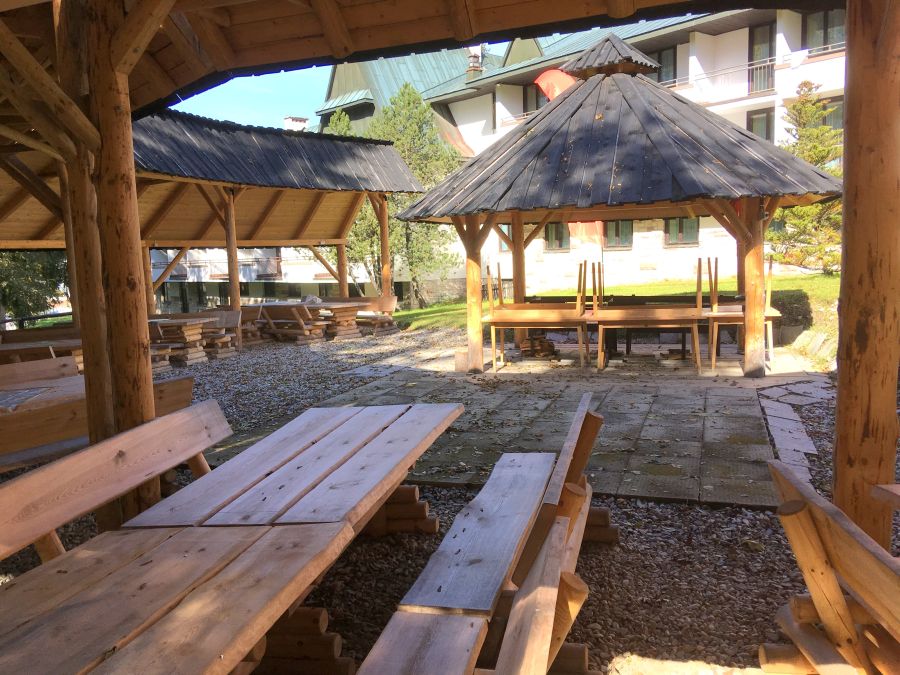 Z drinkbaru można bezpośrednio przejść na taras oraz teren zielony wokół obiektu. Druga restauracja znajduje się w pensjonacie Antałówka II. To mniejsza przestrzeń, która pomieści 40 osób. Swoich gości zintegrujesz podczas spotkania w plenerze w altanie grillowej. W zielonym otoczeniu chętniej spędza się wolny czas, bierze udział w zajęciach teambuildingowych, przekąski z grilla też smakują dużo lepiej! Altana jest zadaszona, z nagłośnieniem i oświetleniem. Podczas biesiady pomieści się tu 70 osób.