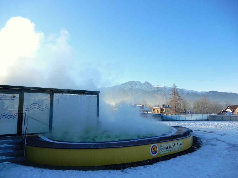 Jeśli chciałbyś zapewnić im relaks połączony z leczniczym działaniem wody siarczkowej, swoich gości zaproś do niecki balneologicznej, która kontynuuje długą tradycję kąpielisk termalnych w Zakopanem. Bogata w wapń, sód, siarkę, magnez, potas i krzem woda o ph 7,6 utrzymuje swoje wyjątkowe właściwości dzięki wysokiej temperaturze: 36–38 stopni Celsjusza. W czasach, gdy praca zawodowa wiąże się ze spędzaniem wielu godzin w pozycji siedzącej za biurkiem, nietrudno o problemy z kręgosłupem. Kąpiele w wodzie siarczkowej pomagają regenerować chrząstkę stawową, co wspiera leczenie choroby zwyrodnieniowej stawów, dyskopatii czy dolegliwości reumatycznych. Działanie przeciwmiażdżycowe wód docenią osoby, które cierpią na problemy z układem krwionośnym, a te, które na co dzień walczą ze zmianami skórnymi spowodowanymi przez łuszczycę lub łojotokowe zapalenie skóry, po regularnych kąpielach w niecce balneologicznej także powinny zauważyć poprawę. Niecka pomieści jednorazowo grupę do 40 osób.