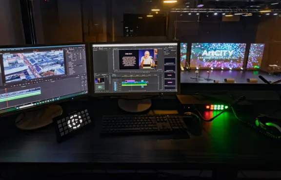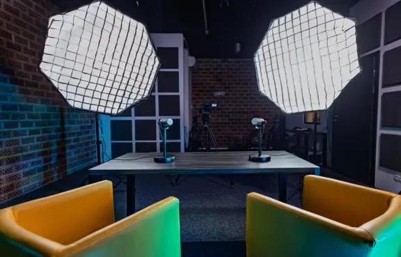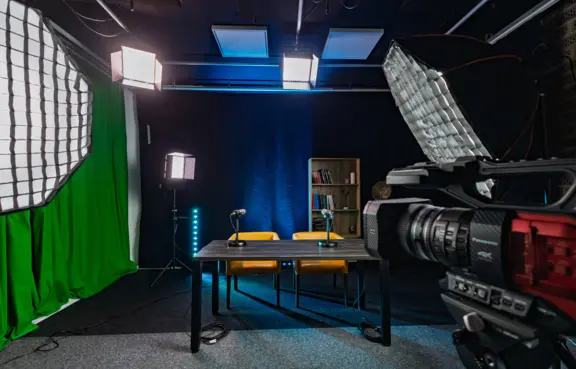 Centrum posiada w pełni wyposażone Studio TV, które umożliwia realizację konferencji Online i hybrydowych. Oprócz tego daje możliwość przeprowadzenia nagrań wywiadów, telekonferencji, i przygotowania podcastów. Oferujemy także postprodukcję materiału nagranego w czasie wydarzeń.