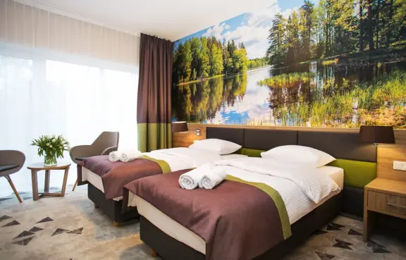 - Bezpośrednie wyjście z sali na taras widokowy na jezioro Necko