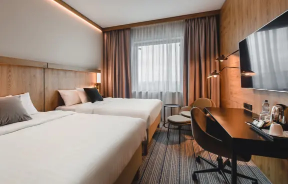 Przytulne pokoje hotelowe (241), w pełni klimatyzowane i dźwiękoszczelne, są wyposażone w WiFi, sejf wielkości laptopa, 55"TVSat. W wolnej chwili goście mogą zrelaksować się w klubie fitness, który dostępny jest 24 godziny na dobę.