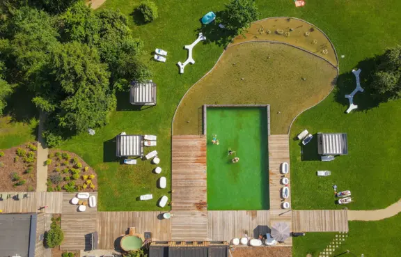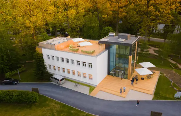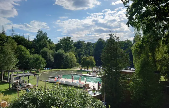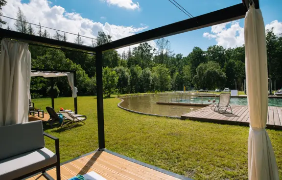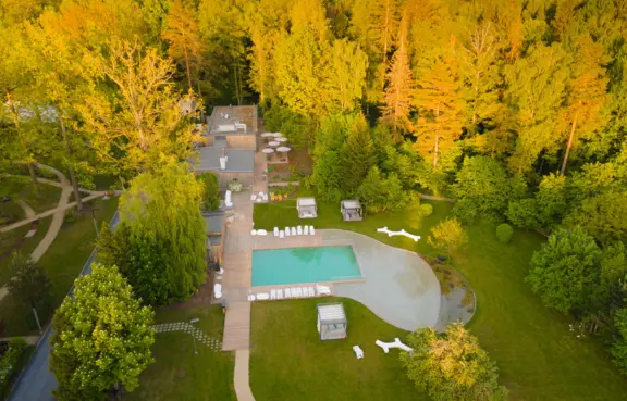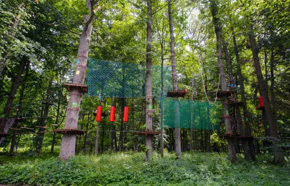 Location: the Bialowieza Forest&Spa Enclave complex is located in the Bialowieza Forest, on an area of 45,000 square metres, in Nieznany Bór, 18 km from Bialowieza and 3 km from Hajnówka. At the heart of the Enclave is the Sensory Pak with sensory zones and a sensory path. In the southern part there is a Recreation Park zone with a biobasin, a Forest Spa with saunas and jacuzzi under the cloud, playgrounds, sports fields and a rope park.
