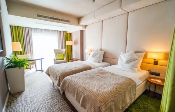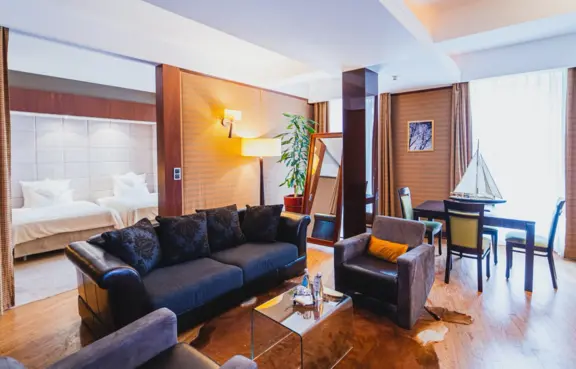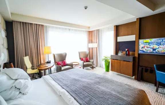 Około 160 miejsc noclegowych w 84 pokojach i apartamentach z klimatyzacją, Internetem, TV, telefonem, sejfem oraz minibarem.