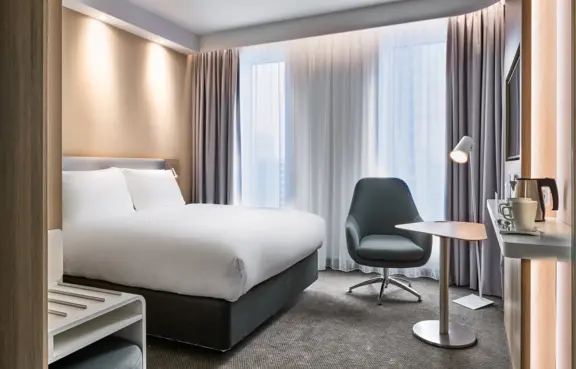 i tetniącej życiem części Warszawy, przy Rondzie Daszyńskiego, oraz oferuje 218 nowoczesnych pokoi. Śniadanie Express® Start Breakfast i dostęp do Internetu wliczone są w cenę pokoju.