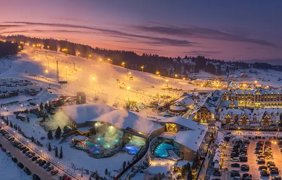 Hotel Bania is a 4-star facility that combines accommodation, catering, conference and entertainment services. It is located next to Poland's largest ski resort in Bialka Tatrzanska and is connected to the Terma Bania thermal pool complex.