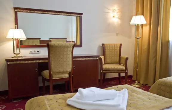 Hotel Holiday Park - obiekt położony w Warszawie, dzielnicy Bielany, bezpośrednio przy trasie E7, 77 (trasa Gdańska) w pobliżu Mostu Północnego z łatwym dojazdem do każdej części stolicy. Posiadamy obszerną i nowoczesną bazę noclegowo – konferencyjną. Usługi oferowane przez Hotel Holiday Park, to m.in.: sprzedaż noclegów, organizacja konferencji, szkoleń oraz imprez integracyjnych, organizacja bankietów i imprez okolicznościowych. Dysponujemy 8 nowocześnie urządzonymi klimatyzowanymi salami konferencyjnymi o powierzchniach od 30 m2 do 300 m2 z dostępem do bezprzewodowego Internetu, wyposażonymi w rzutnik multimedialny, flipchart z papierem i pisakami, ekran i TV Znajdziecie w hotelu: lobby, recepcję 24h, nową restaurację Gold oraz bezpłatne miejsca parkingowe. Do dyspozycji gości 65 eleganckich pokoi, dopracowanych do najmniejszych szczegółów, w tym 54 pokoi dla 2 osób, 6 pokoi Deluxe, 12 apartamentów z wanną jacuzzi oraz pokój dla osób niepełnosprawnych. Pokoje wyposażone w tapicerowane meble z czerwonej czereśni zdobione złotymi ornamentami i tkanin dają poczucie luksusu i elegancji. Łazienki są wyposażone w ekskluzywne prysznice, radiomagnetofon oraz oświetlenie LED. Hotel Holiday Park jest idealnym miejscem dla wszystkich gości, którzy odwiedzają Warszawę.