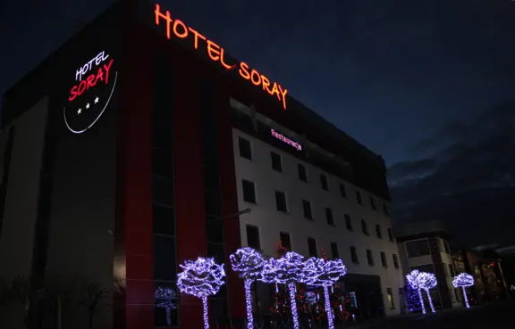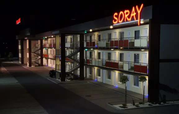 Hotel SORAY oferuje przestronny teren, który zapewnia wygodę i bezpieczeństwo dla naszych gości: 1. Ogrodzenie: Teren wokół budynku jest ogrodzony, co zapewnia prywatność i bezpieczeństwo dla naszych gości. 2. Parking: Dysponujemy dobrze oświetlonym i strzeżonym parkingiem, który jest dostępny bez dodatkowych opłat. Nasz parking oferuje wygodne miejsca parkingowe bezpośrednio przy pokojach, zgodnie ze stylem amerykańskim, co ułatwia dostęp i wygodę dla naszych gości. 3. Parking dla autokarów: Nasz parking jest również przystosowany do pomieszczenia 6 autokarów, co sprawia, że jesteśmy doskonałym wyborem dla grup zorganizowanych i turystów podróżujących autobusami. Dzięki naszym udogodnieniom parkingowym, nasi goście mogą cieszyć się spokojem i wygodą.