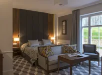 Pokój dwuosobowy o powierzchni około 30 m2 z dwoma pojedynczymi łóżkami lub z łożem małżeńskim. Łazienka z prysznicem. Wszystkie pokoje dla niepalących. Wyposażenie: bezprzewodowy bezpłatny internet, klimatyzacja, telefon, telewizja satelitarna, sejf, sus
