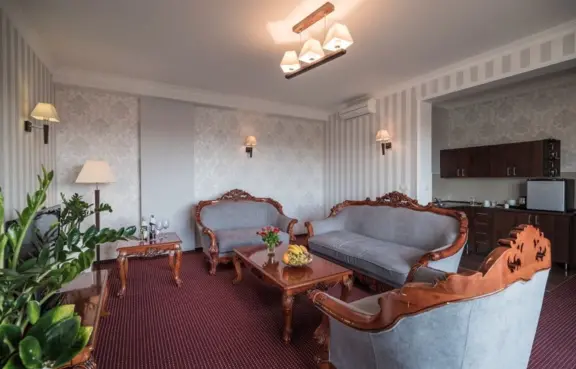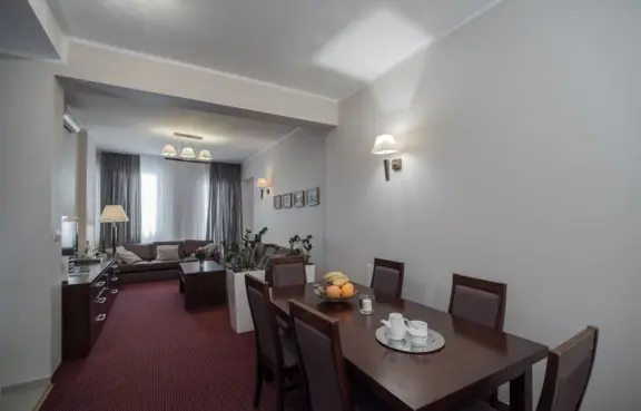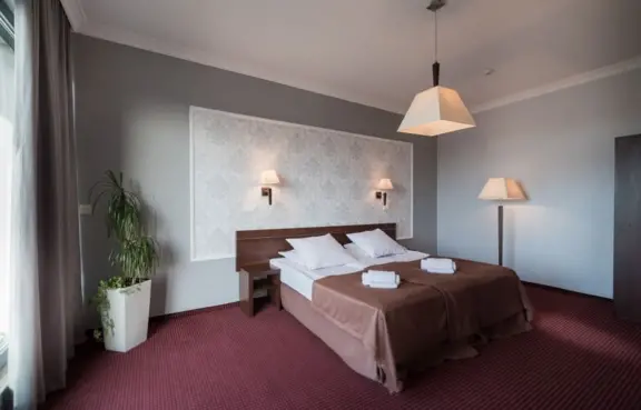 Trzygwiazdkowy hotel, z 96 pokojami i 6 salami konferencyjnymi.