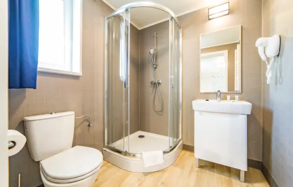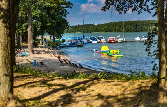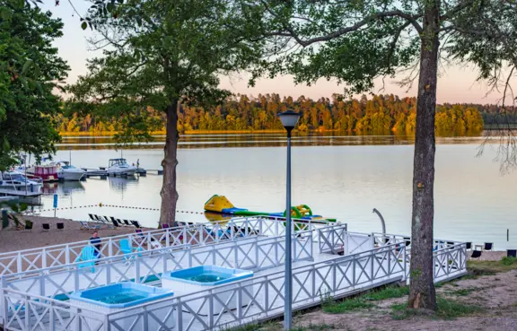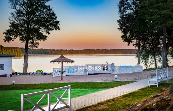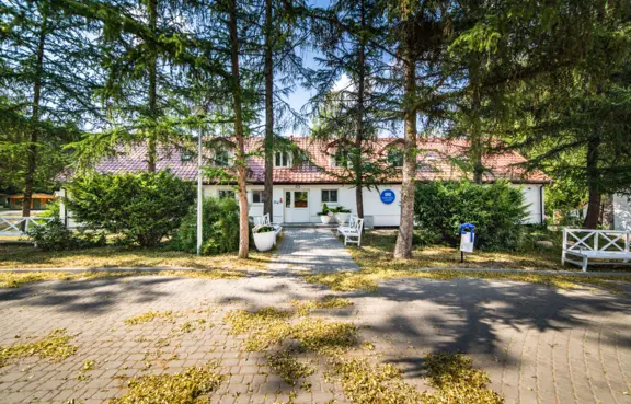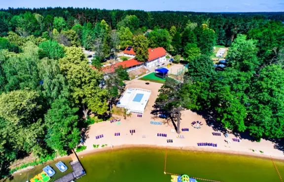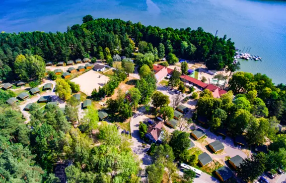 Na bazę noclegową składa się ponad 900 miejsc noclegowych w nowych, kompleksowo wyposażonych drewnianych domkach oraz w pokojach w głównym budynku hotelowym.