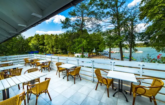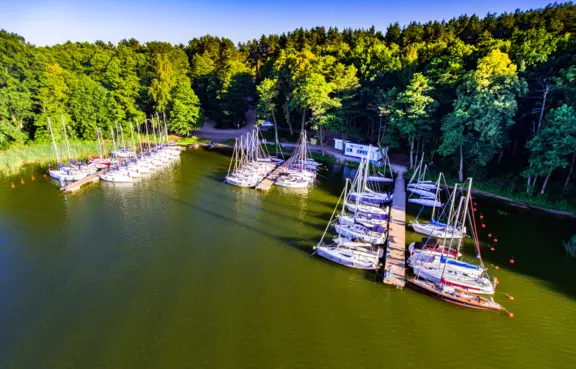 Do dyspozycji organizatorów wydarzeń biznesowych udostępniono 2 kameralne, kompleksowo wyposażone sale: Białą (49 mkw., 40 osósb)oraz Niebieską (40,5 mkw., 43 osoby). Pozostałe przestrzenie eventowe to Namiot Bankietowy (135 mkw., 200 osób) i Tawerna Bosmańska (184 mkw., 150 osób). Na zewnątrz dostępny jest też przestronny taras z widokiem na jezioro, chętnie wykorzystywany, jako miejsce na eventy i koncerty.