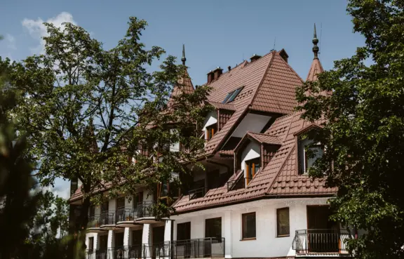 Architektura: kilkupiętrowy murowany budynek o jasnej elewacji, utrzymany w stylu zakopiańskim.