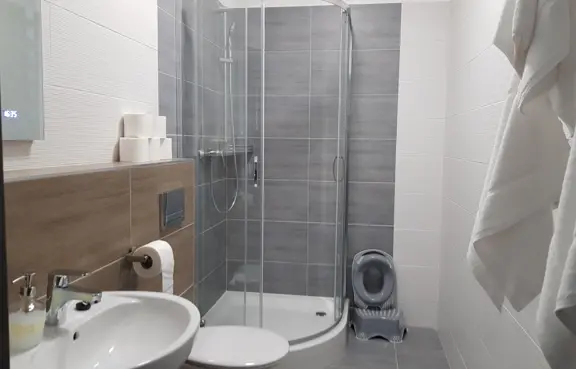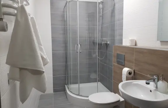 Wszystkie pokoje do dyspozycji gości są z łazienkami. Wychodzimy naprzeciw osobom niepełnosprawnym. Dla nich oferujemy pokoje przystosowane do ich potrzeb, tabliczki z nr pokoi w języku Braille`a, jak również windę z sygnałem dźwiękowym.