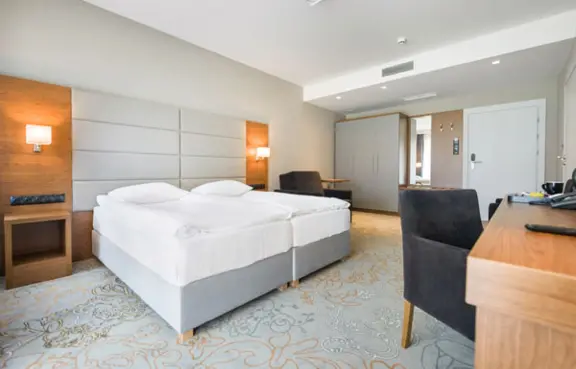 29 klimatyzowanych pokoi przeznaczonych dla około 58 osób. W pokojach znajduje się TV, biurko, sejf i minibar.
