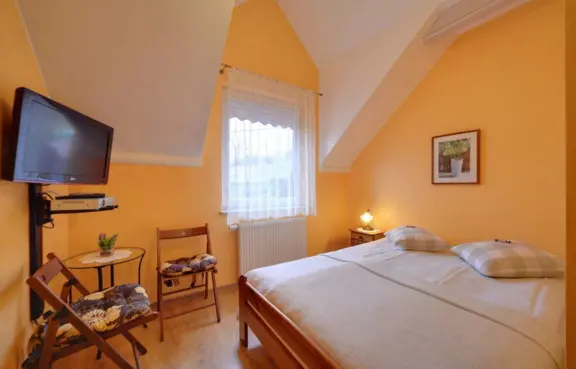 Pokoje: 33 miejsca noclegowe w pokojach i apartamencie.