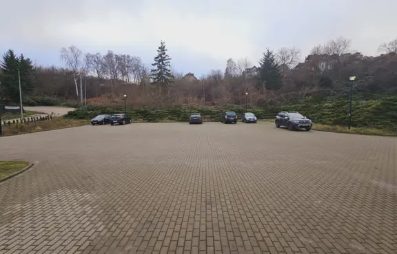 Plac z miejscami parkingowymi znajduje się tuż przy budynku.